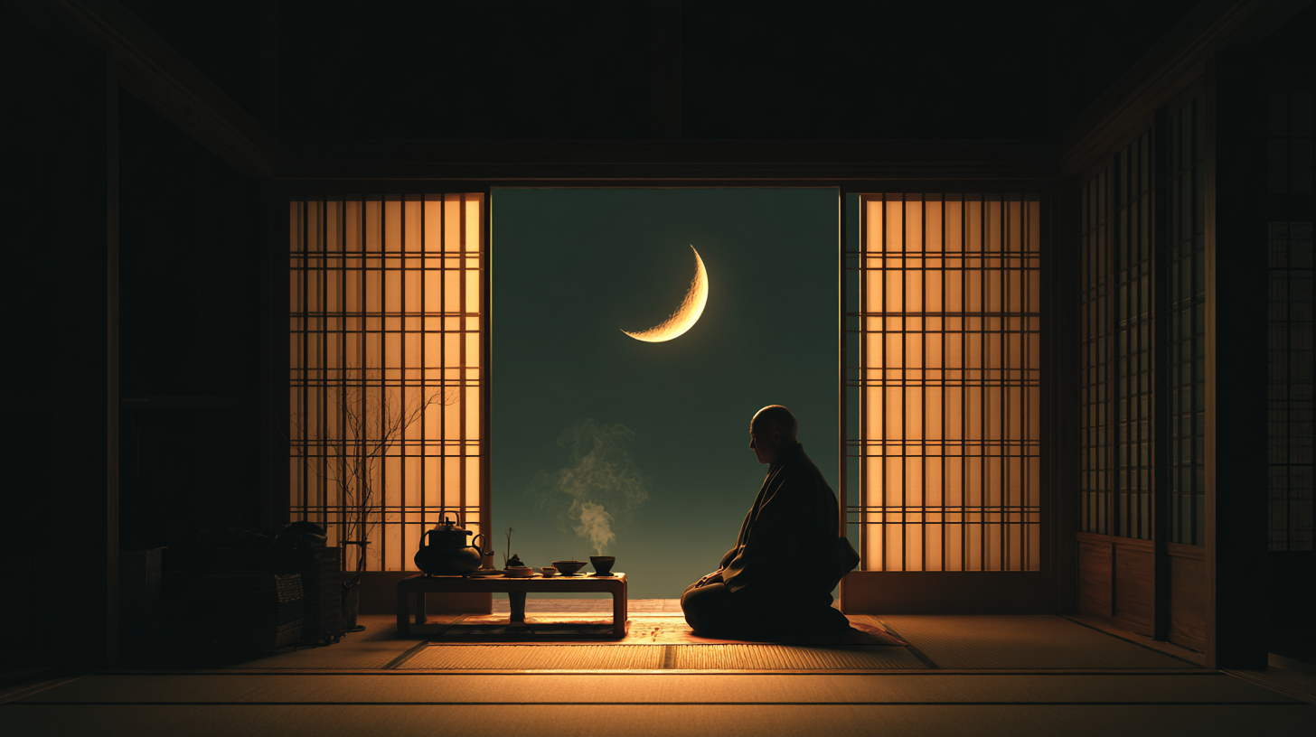 仏像、墨、余白、俳画。